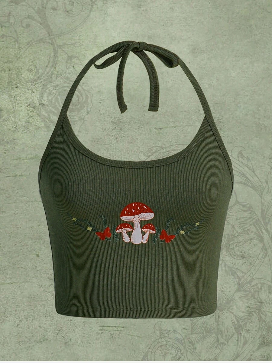 Fairycore Top Ras-Du-Cou Imprimé Champignon