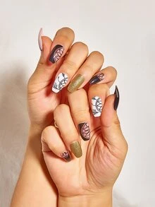 Nail Nina 24 pièces Faux ongles scintillant & 1 feuille Ruban
