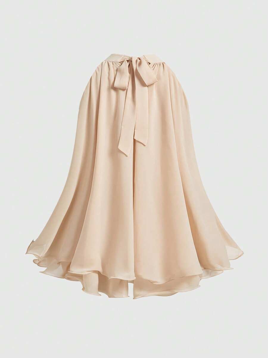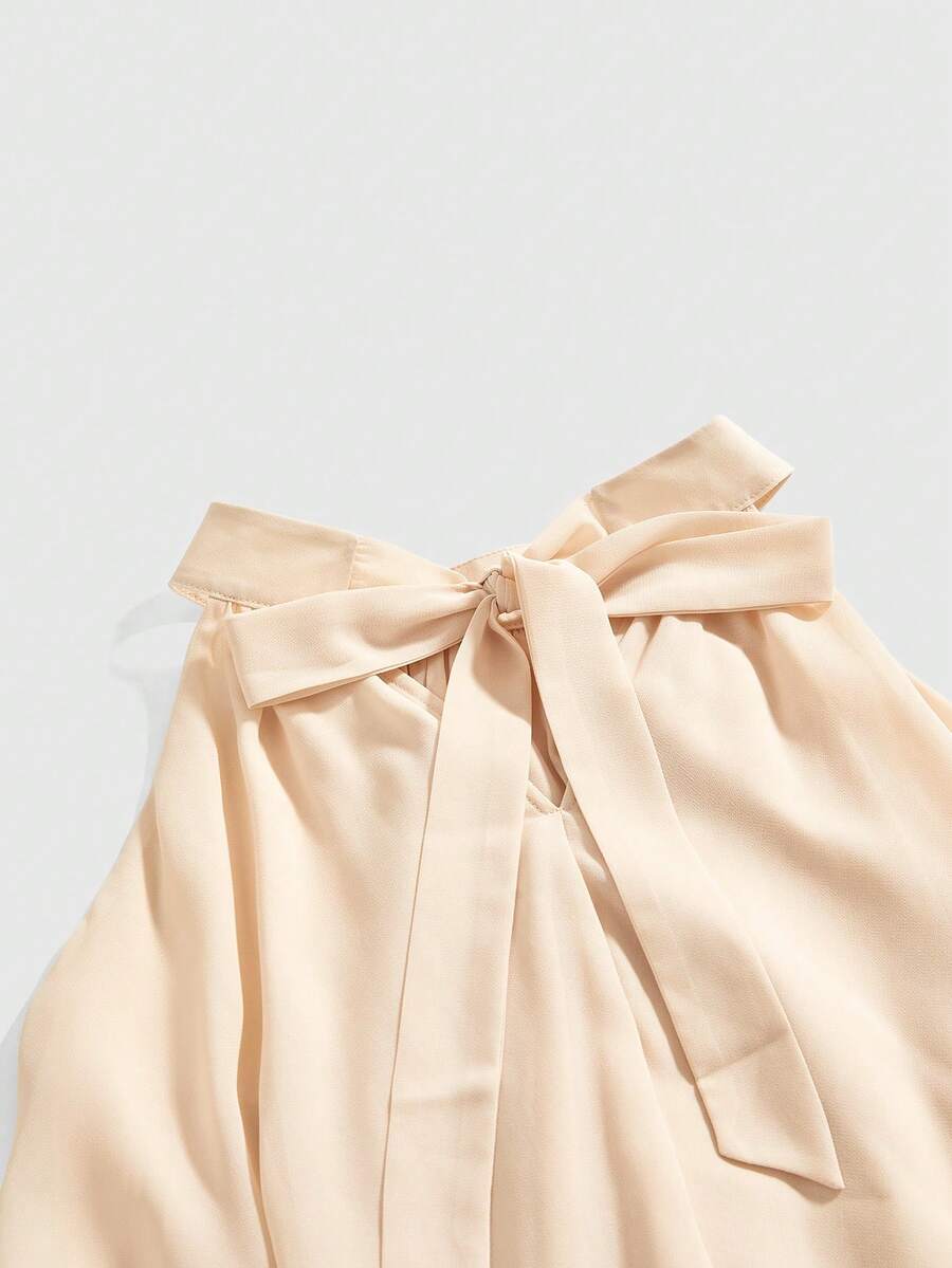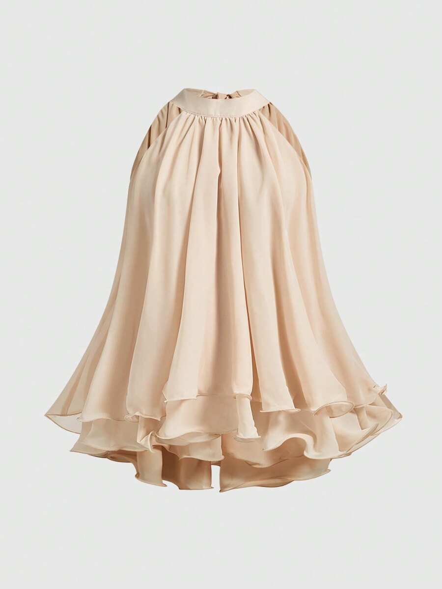 Blouse en mousseline de soie abricot à volants et fluide pour femmes