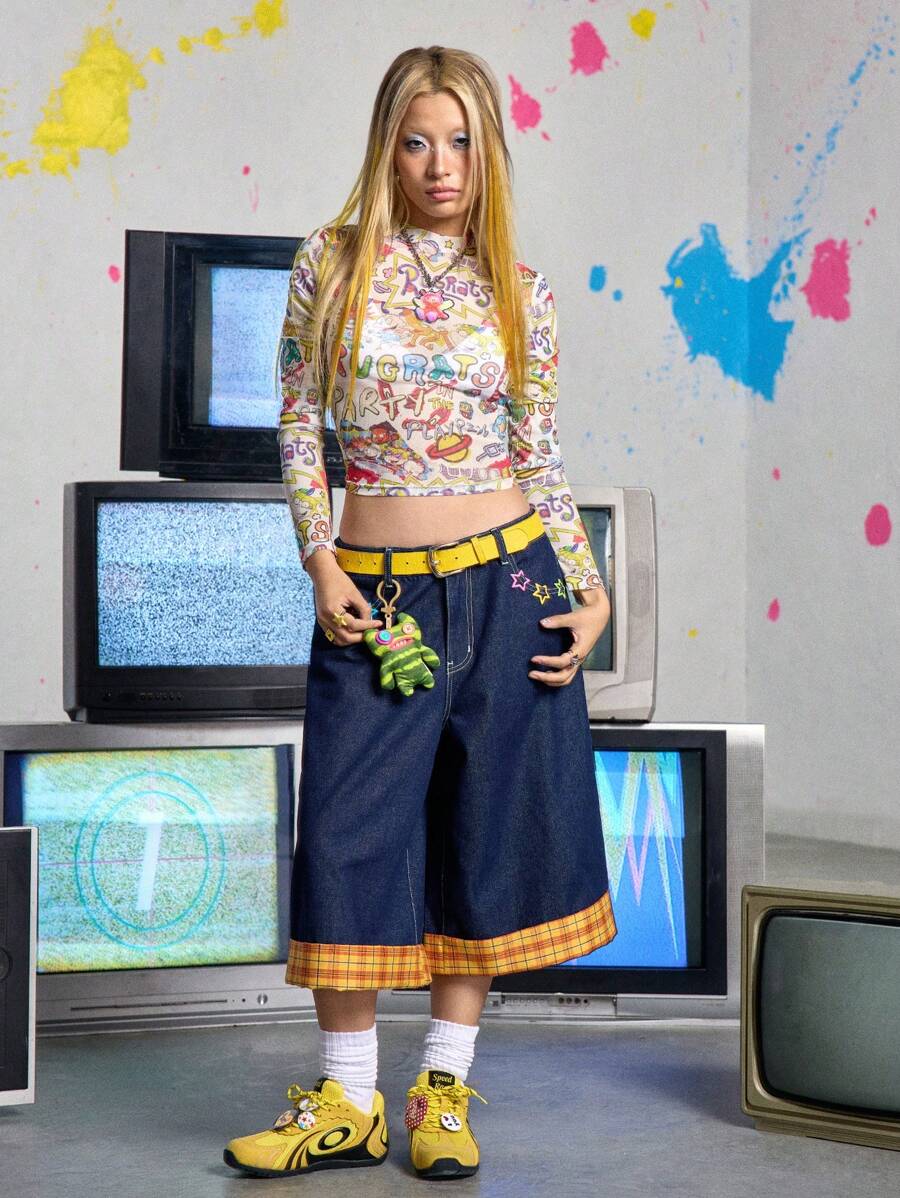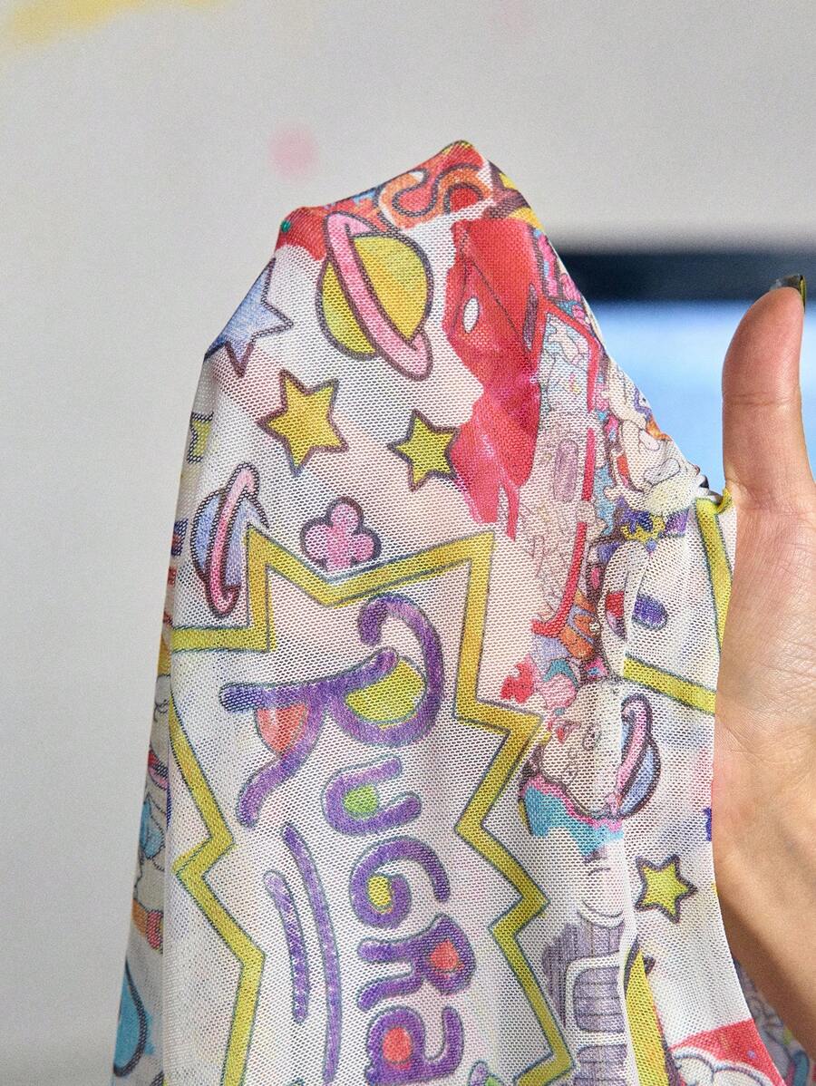 Nick 90's X ROMWE Top à manches longues en maille transparente avec motif de dessin animé pour femmes