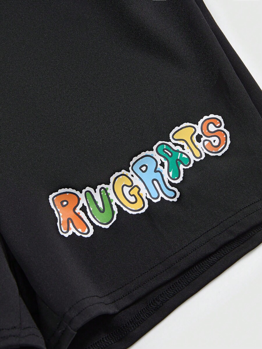 Nick 90's X ROMWE Short de cyclisme pour femmes avec motif de dessin animé et lettres, pour l'été
