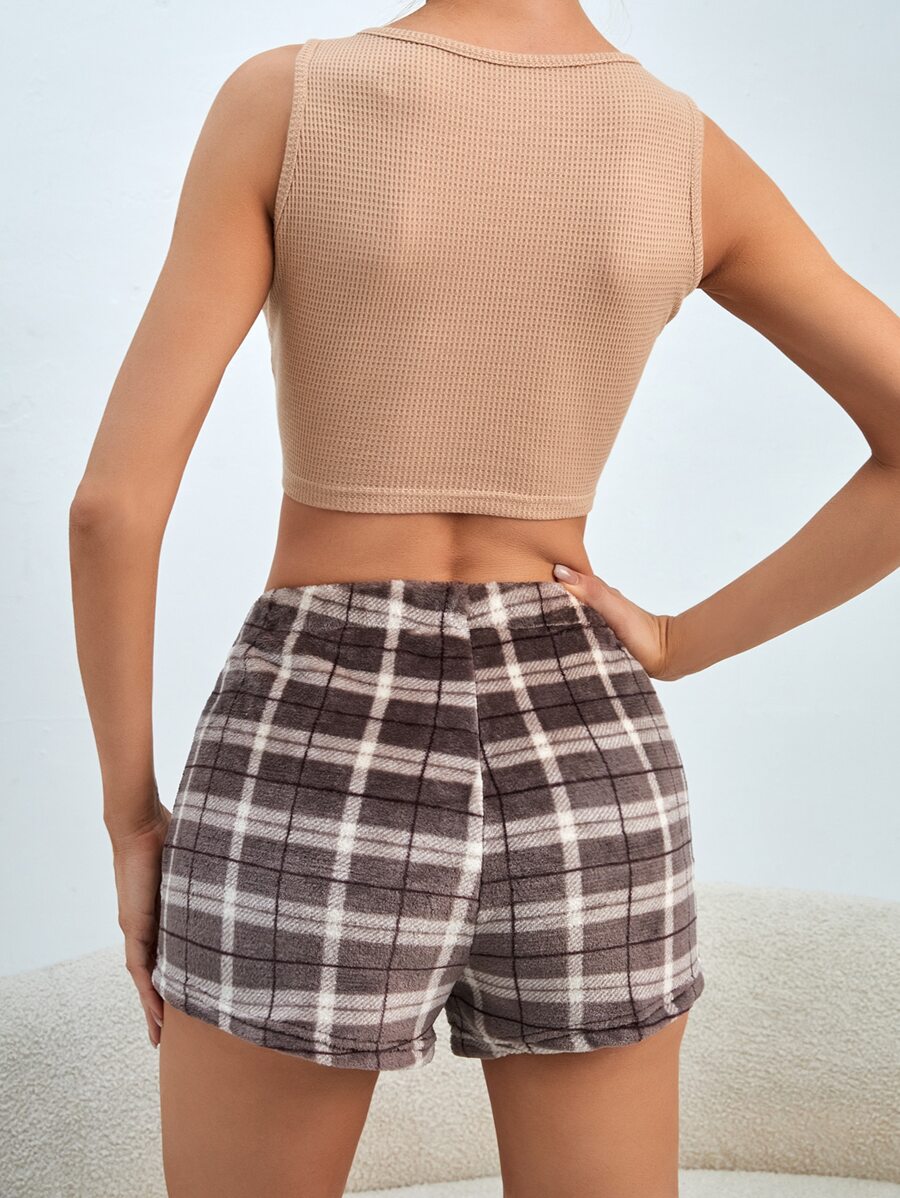 Top sans manches & Short de nuit à carreaux à nœud papillon