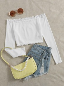 Top côtelé col bardot avec plis