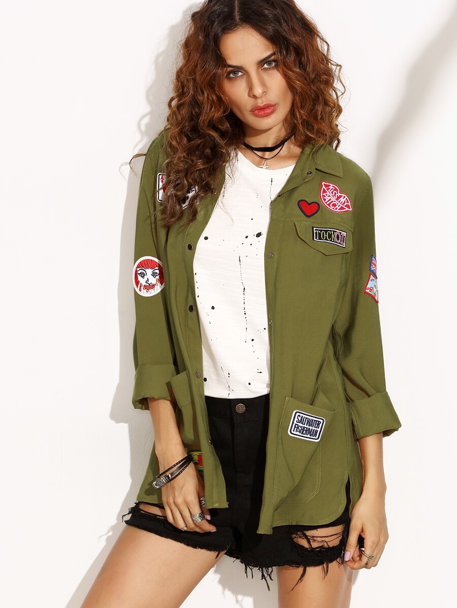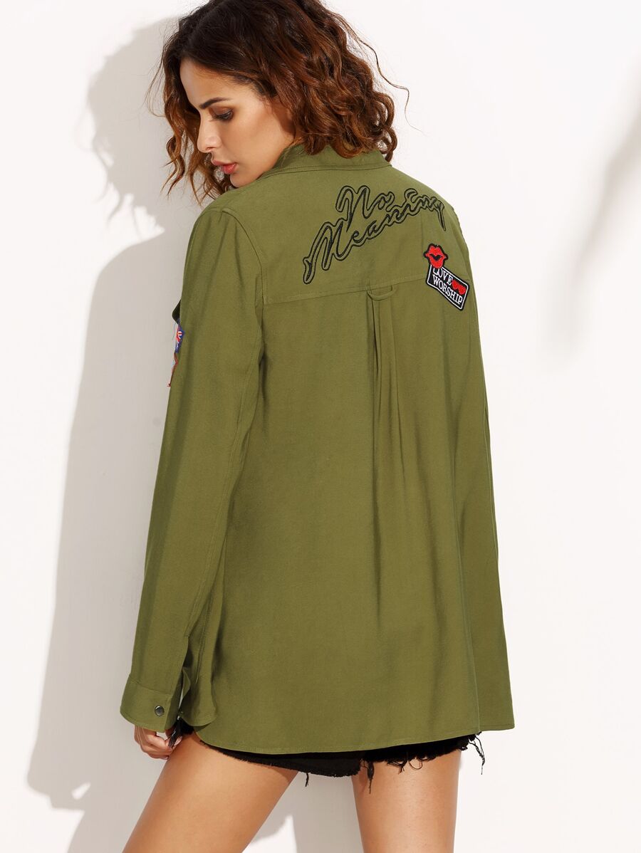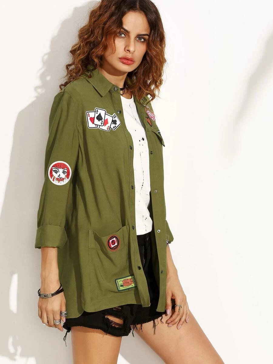 Veste col à revers manche longue avec pièces brodées