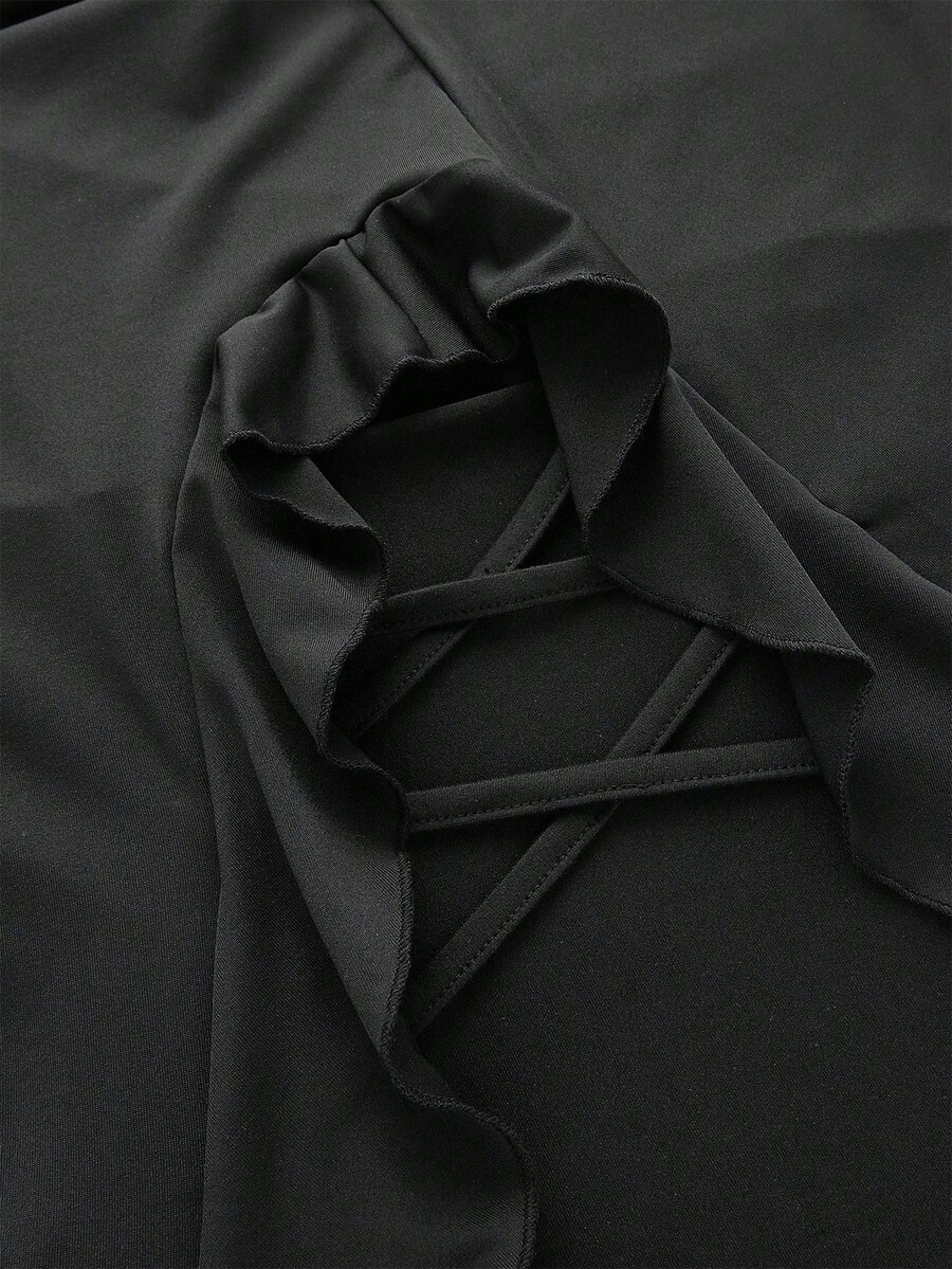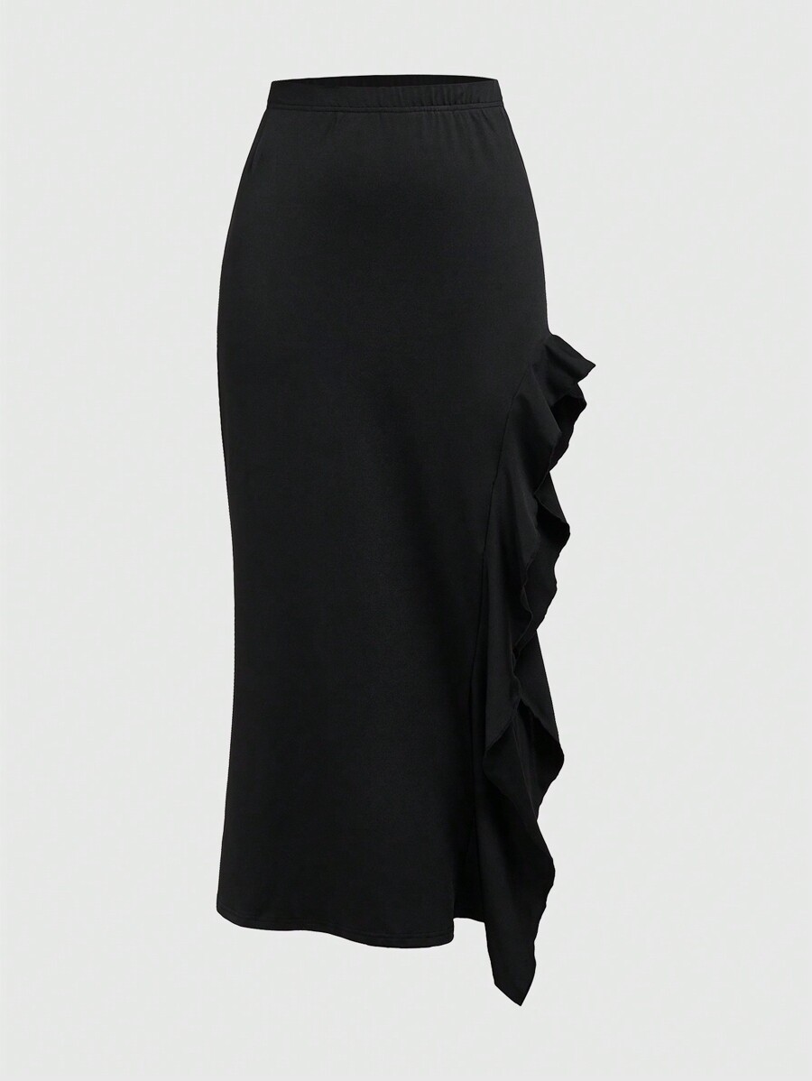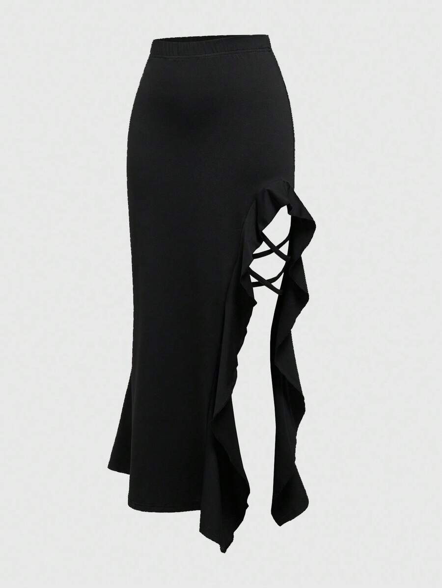 PETITE Jupe mini fendue à volants de base rétro pour femmes, style festival de musique sexy