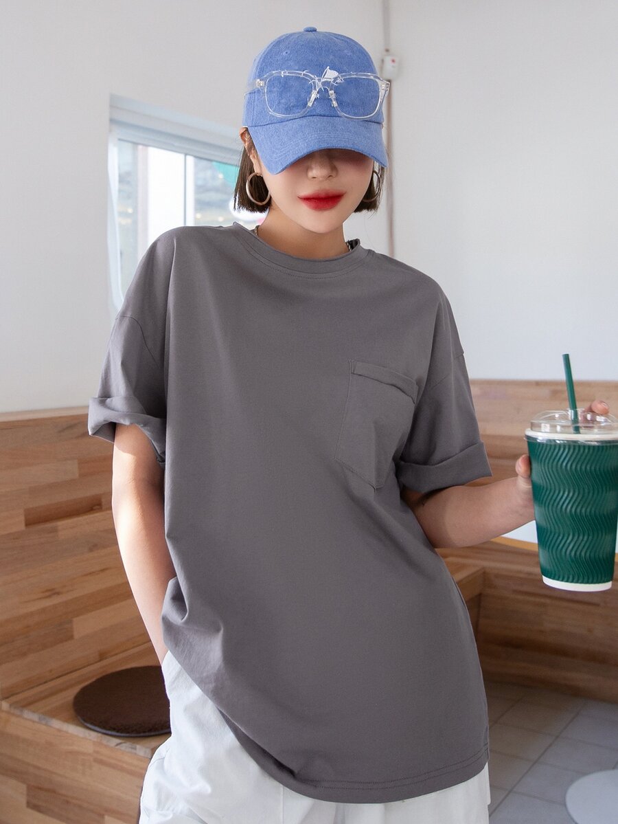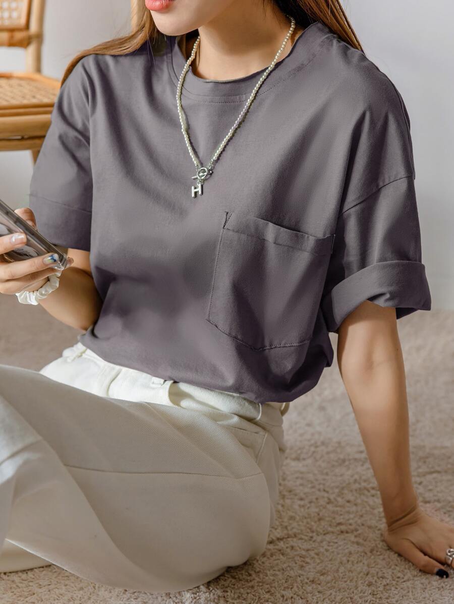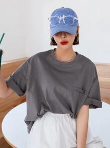 T-shirt À Épaules Tombantes Avec Poche Patchée