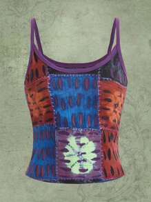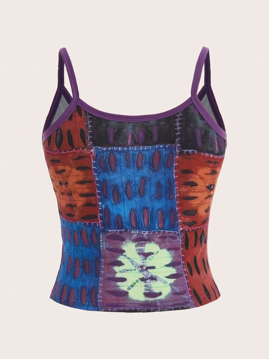 Hippie Top À Fines Brides Imprimé Patchwork Sonnerie