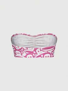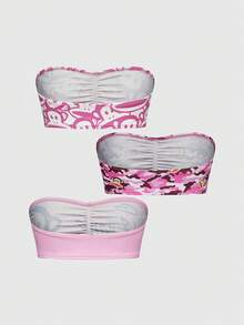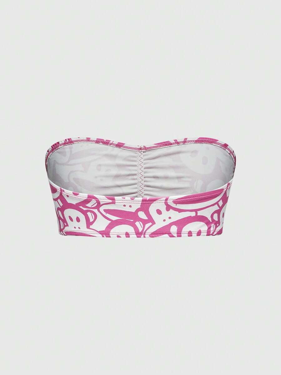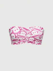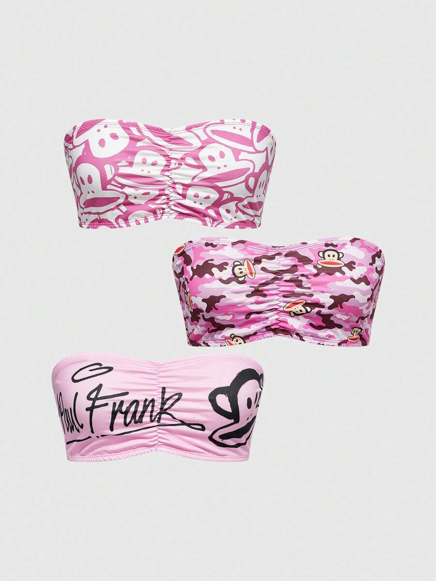Paul Frank X ROMWE 3 pièces Brassière sans fil plissée avec imprimé singe