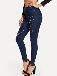 Jean déchiré avec perles