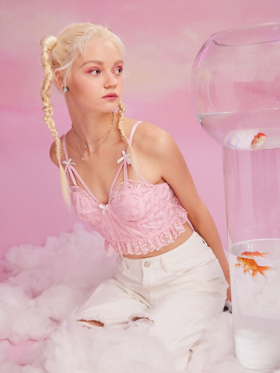 Top à fines brides Poissons en dentelle à broderie à détails ajourés