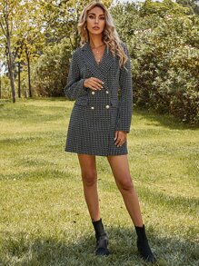 Robe blazer en tweed à carreaux avec boutons