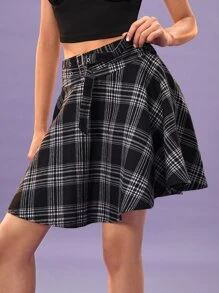 Jupe à carreaux à œillets ceinturé