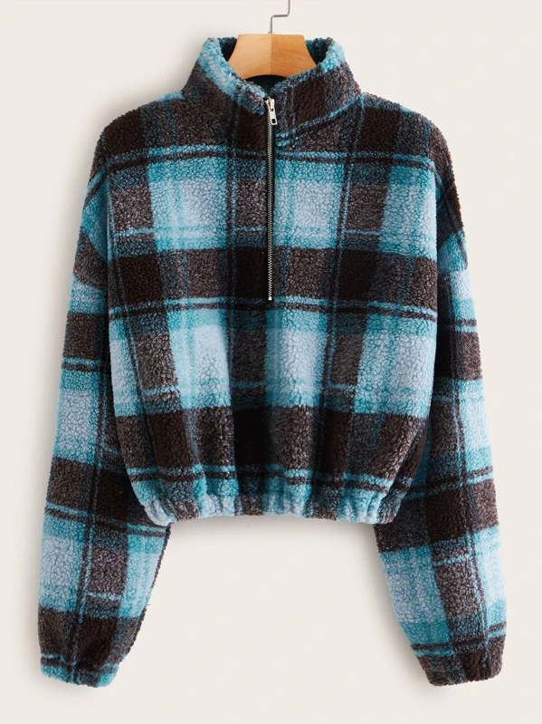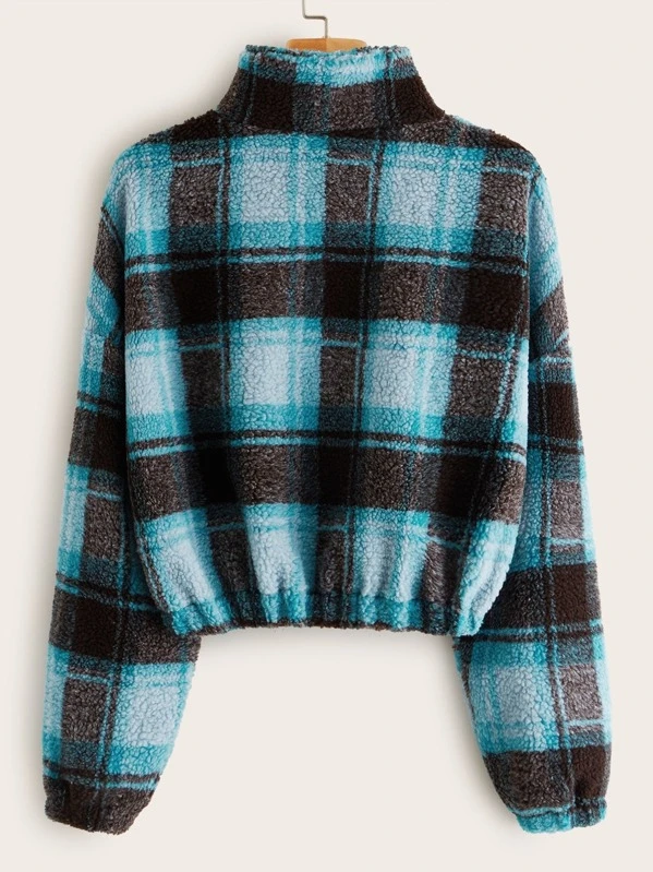 Sweat-shirt en tissu duveteux zippé à carreaux
