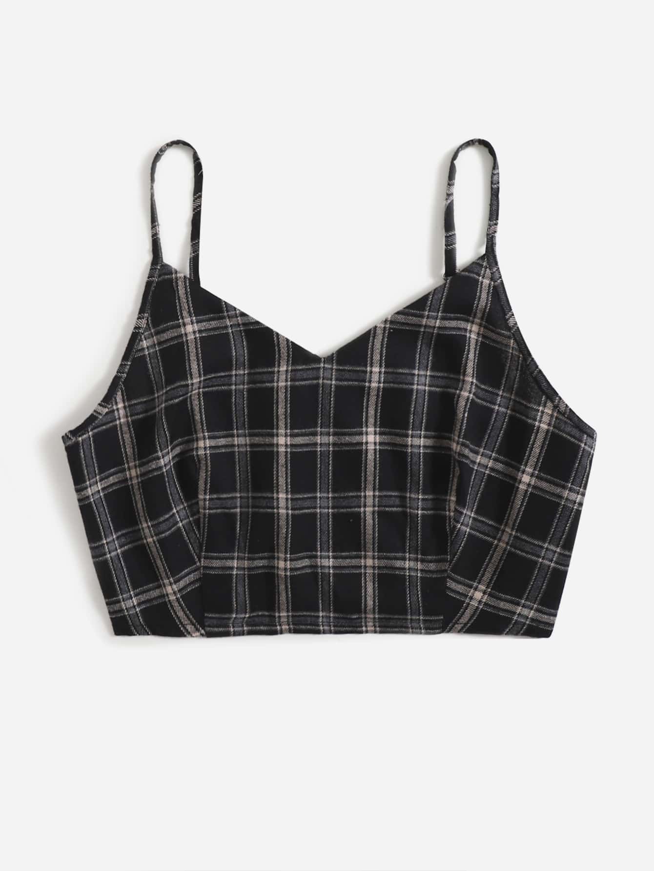 Top à fines brides à carreaux