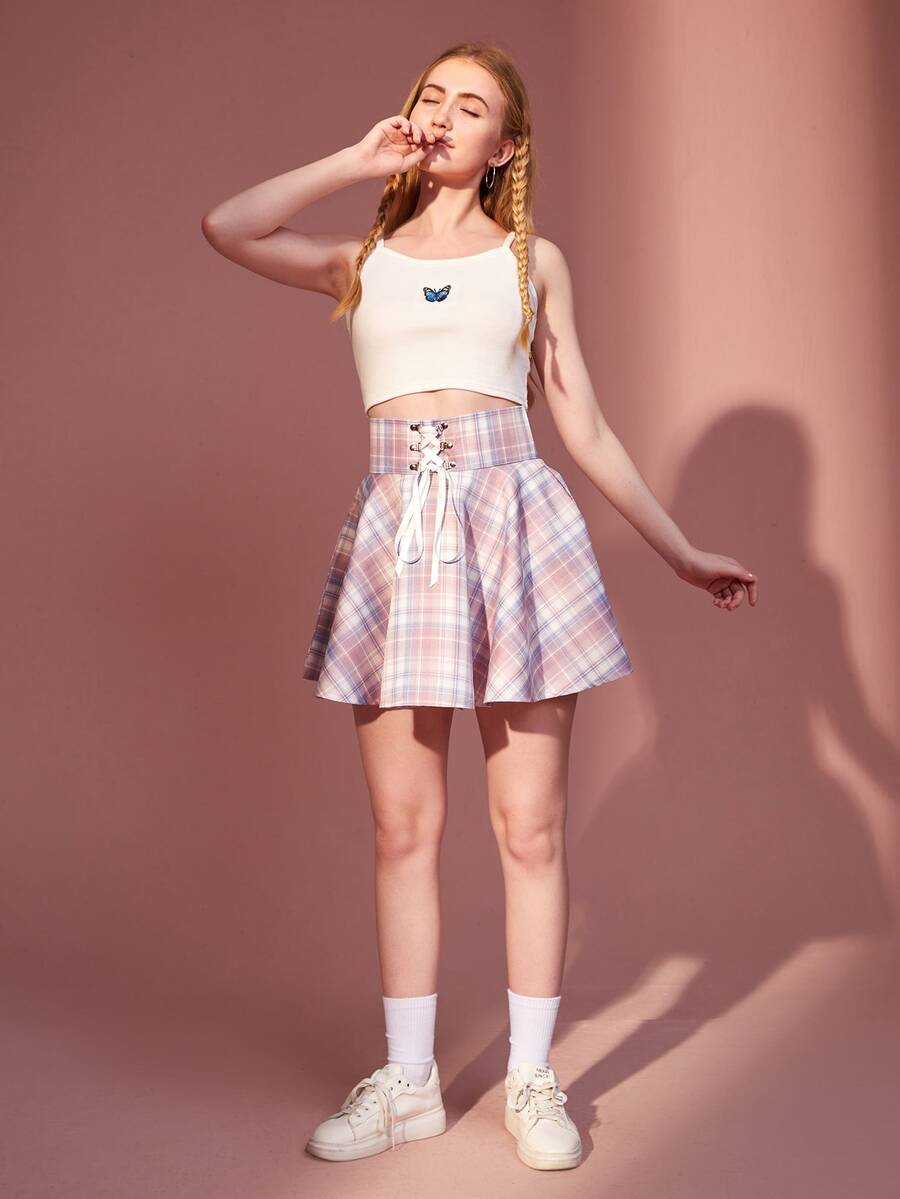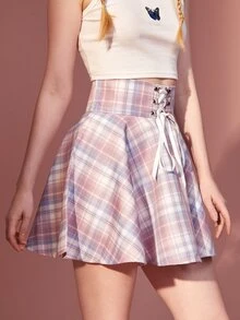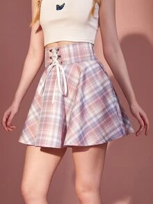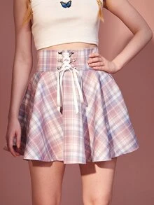 Jupe à carreaux à lacets