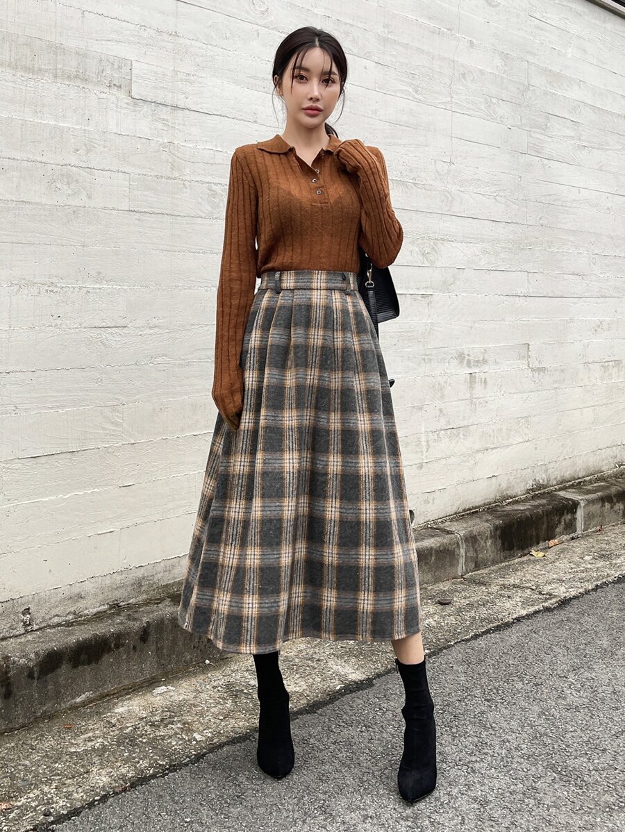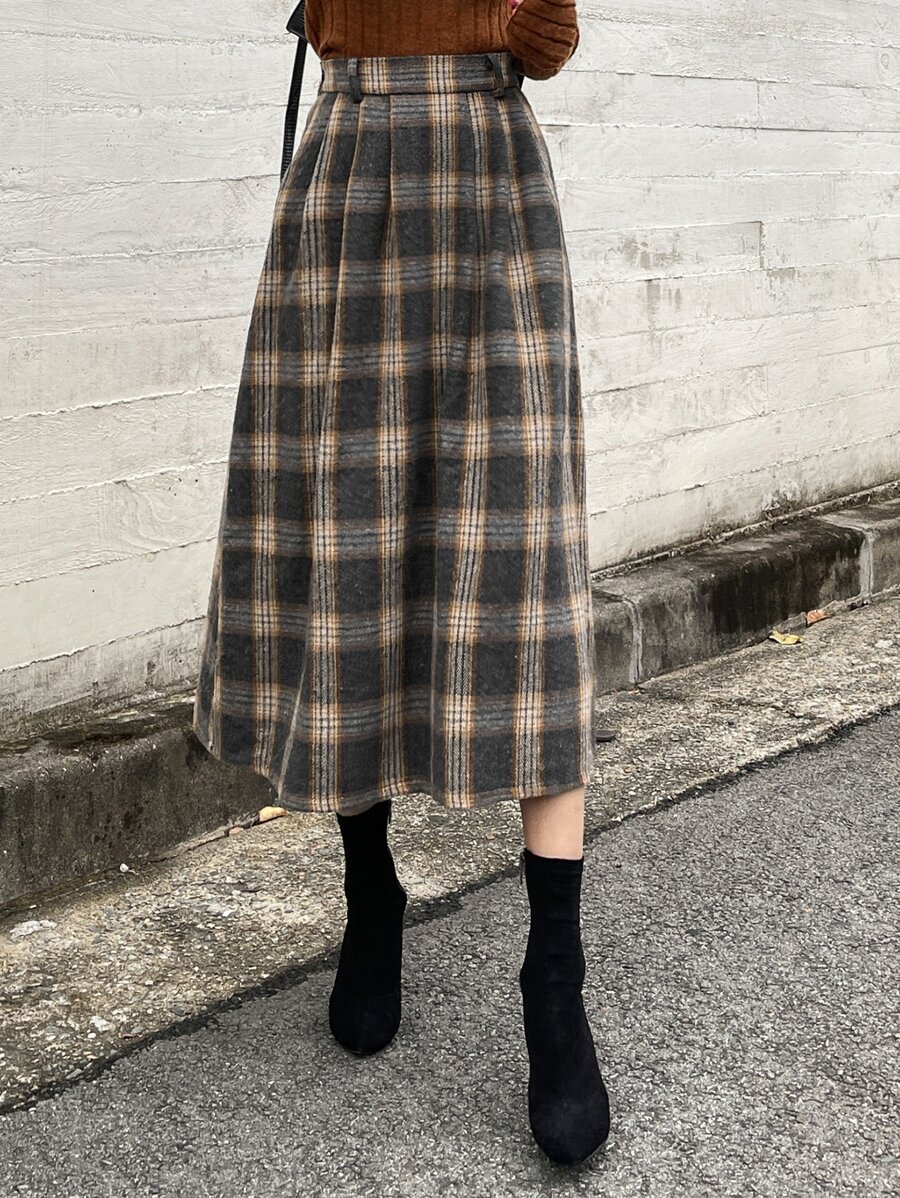 Jupe plissée à imprimé à carreaux, automne/hiver