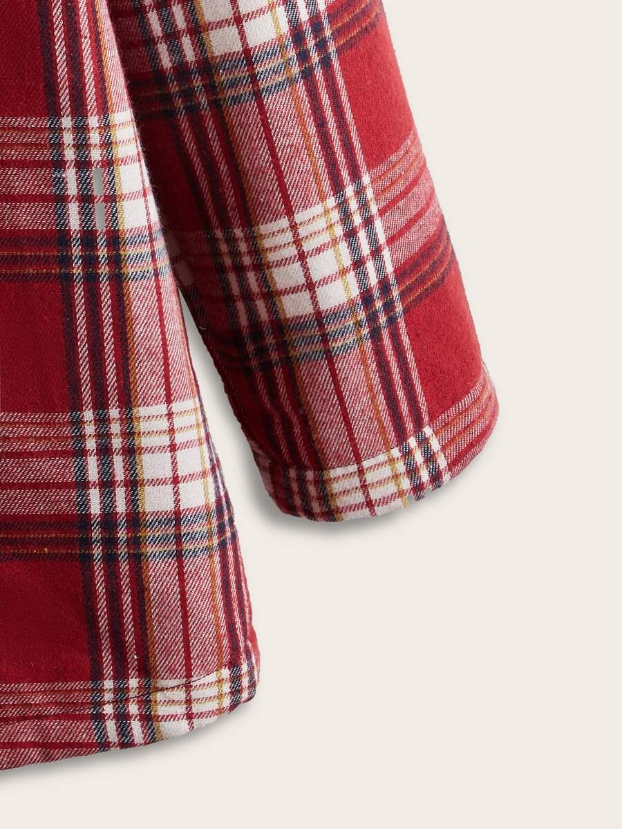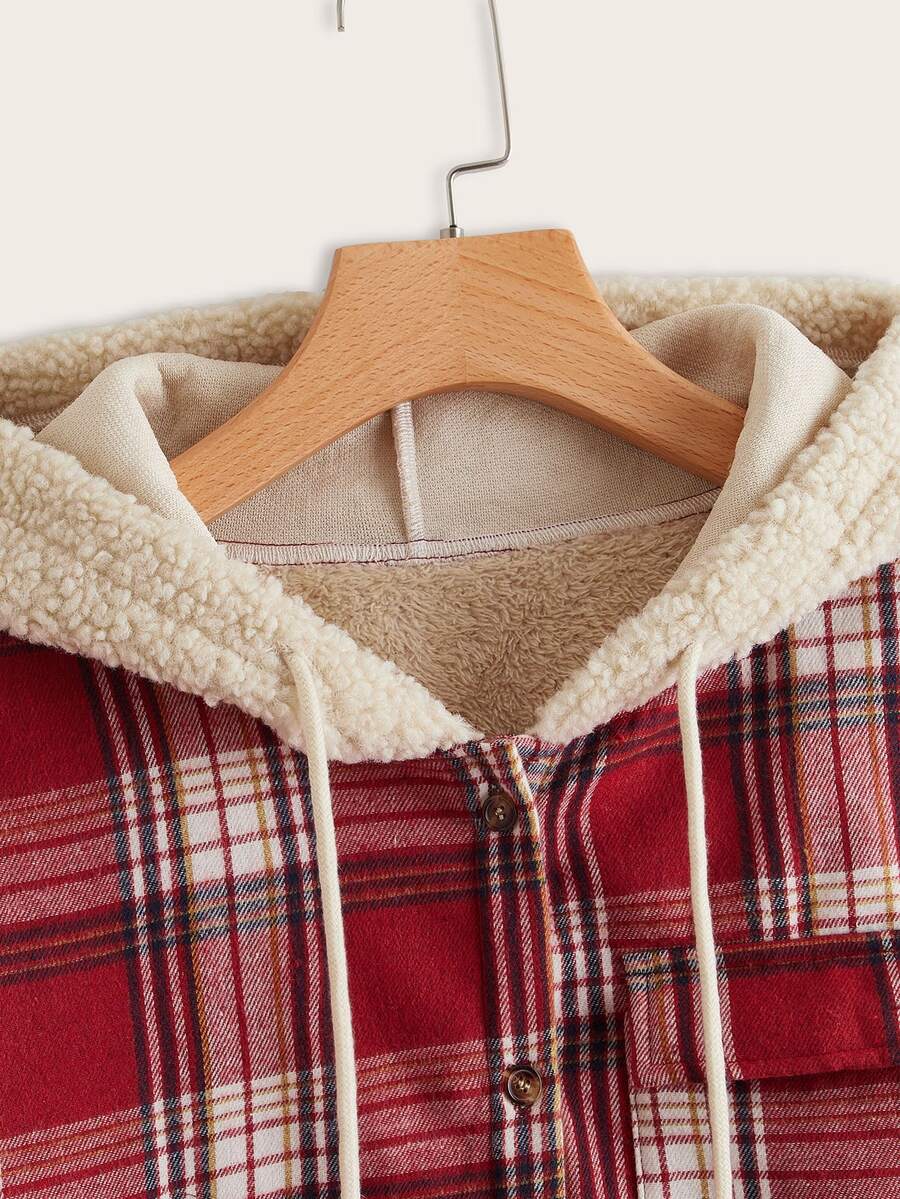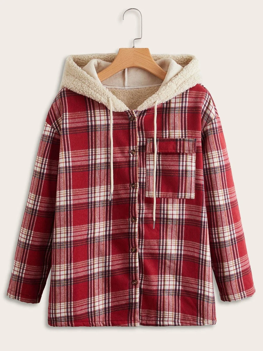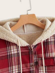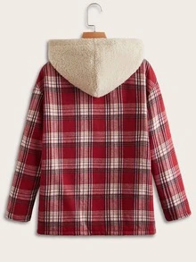 Manteau à capuche à carreaux à doublure en tissu duveteux