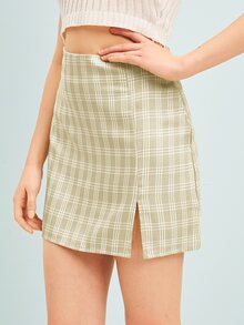 Jupe courte fendue à carreaux