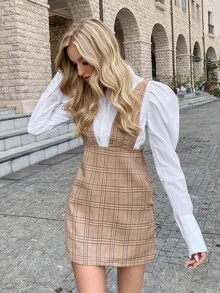 Robe salopette zippée à carreaux