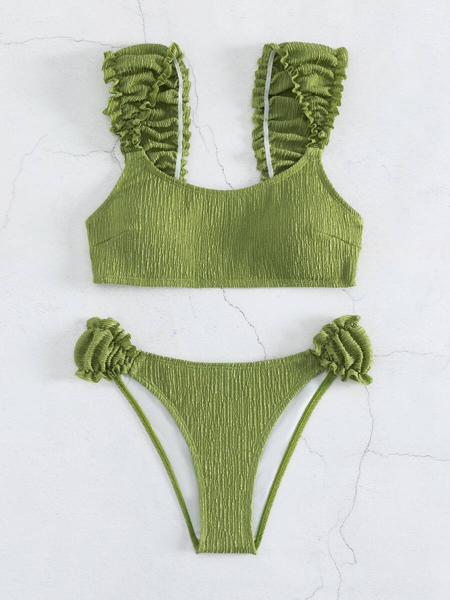 Ensemble bikini d'été de plage simple avec bordure à volants