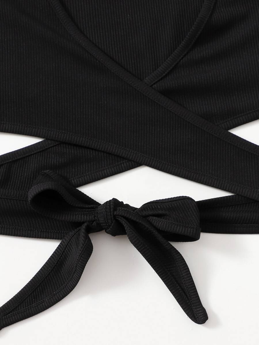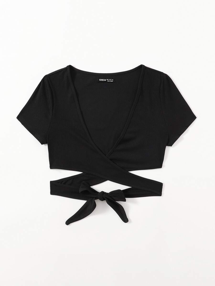 Top court croisé décolleté avec nœud