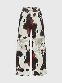 Grunge Punk Jeans effet imprimé animal vintage délavé et déchiré, style grunge-punk, grande taille. Pantalon pour femme