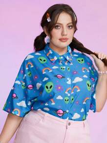 ThisUniqueVibe Plus Chemise alien & Imprimé Arc-En-Ciel Épaule tombante