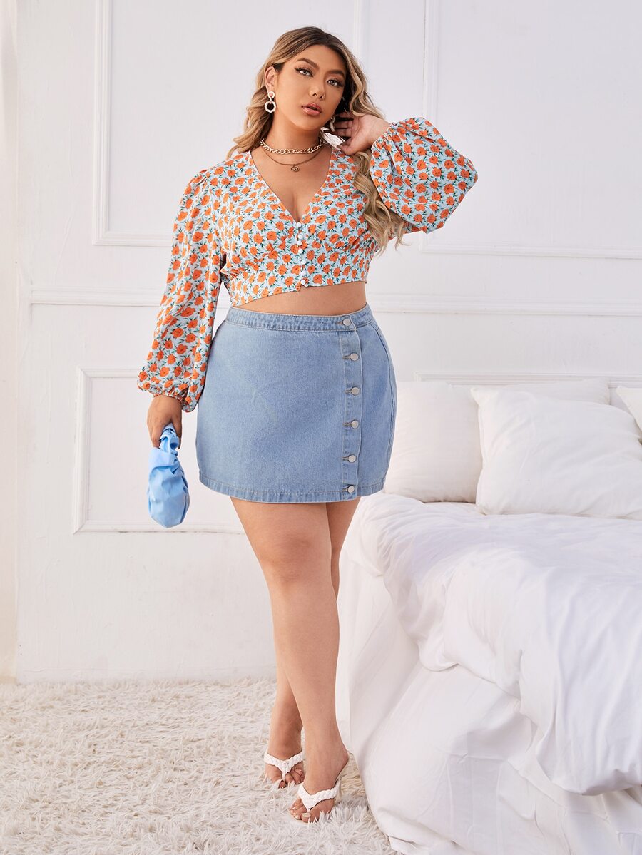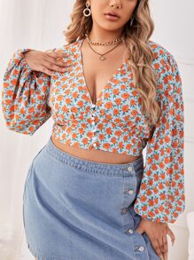 Blouse courte à imprimé fleuri manches bishop