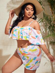 Ensemble bikini grande taille imprimé intégral taille haute avec jupe de plage pour l'été