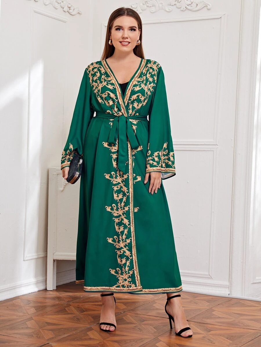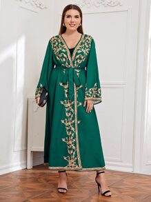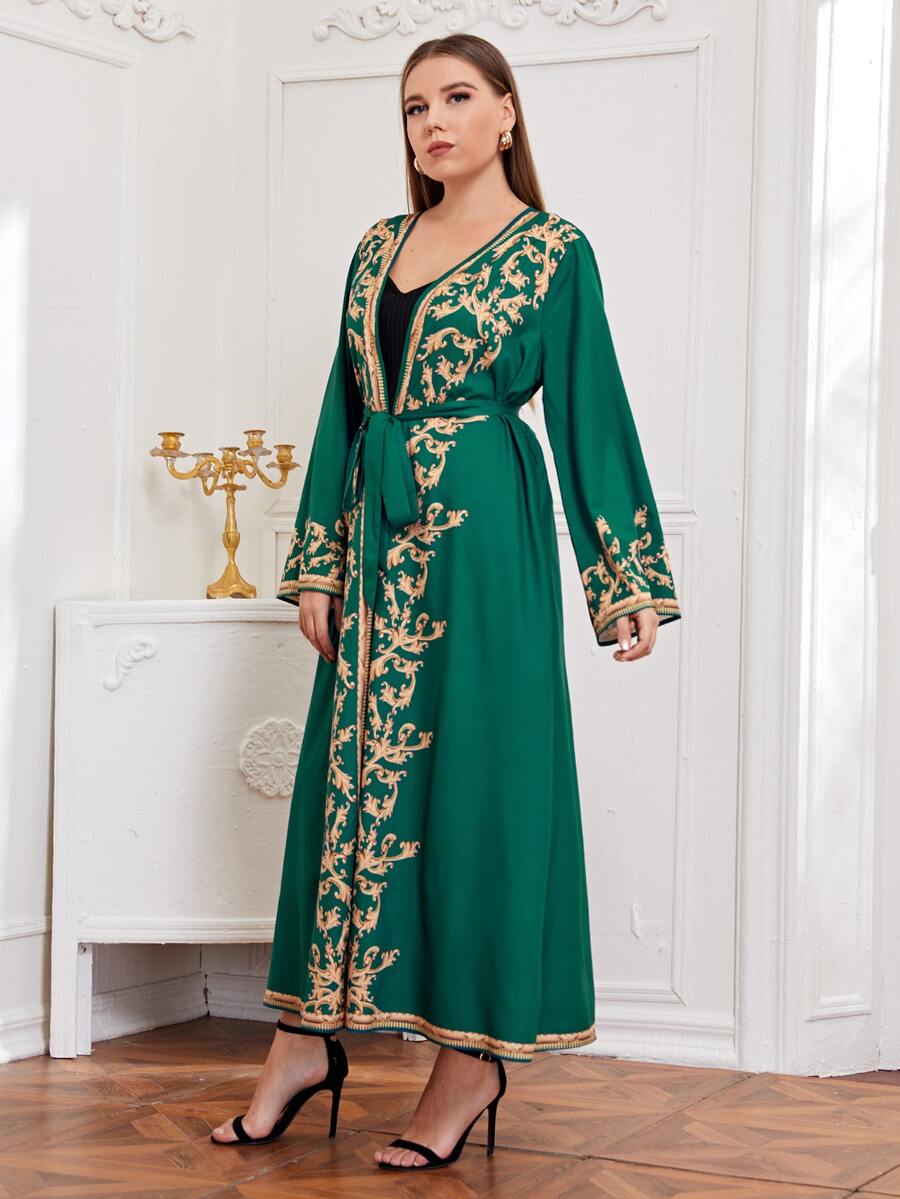 Abaya à imprimé à manches cloche avec ceinture