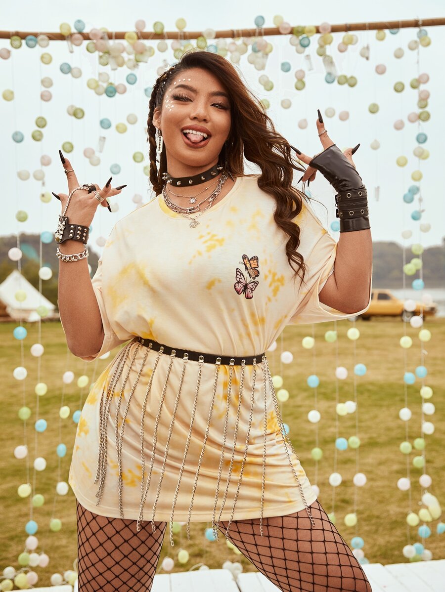 T-shirt à imprimé papillon tie dye (sans ceinture)