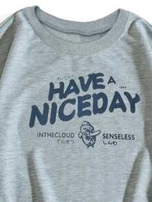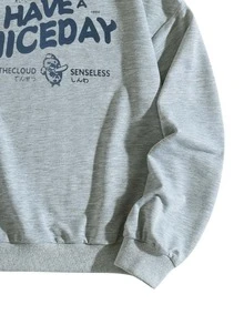 Sweat-shirt thermique dessin animé & lettre japonaise