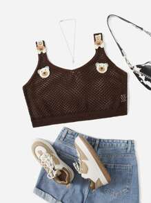 Top en tricot à applique dessin animé transparent (sans soutien-gorge)