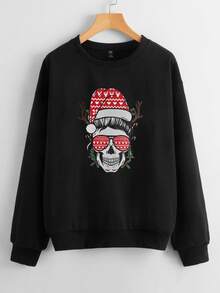 Sweat-shirt à imprimé tête de mort et chapeau de Noël