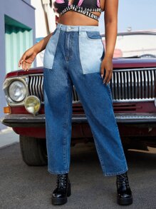 Jean mom avec blocs de couleur