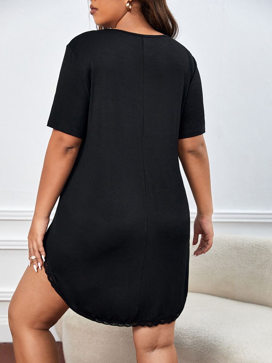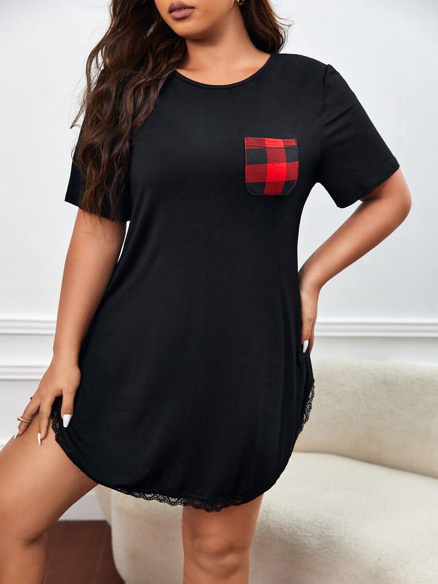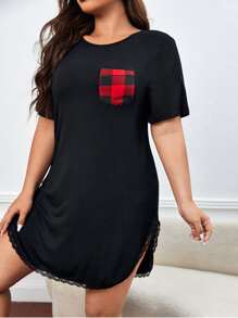 Robe de nuit contrastant à carreaux avec poche ourlet en dentelle