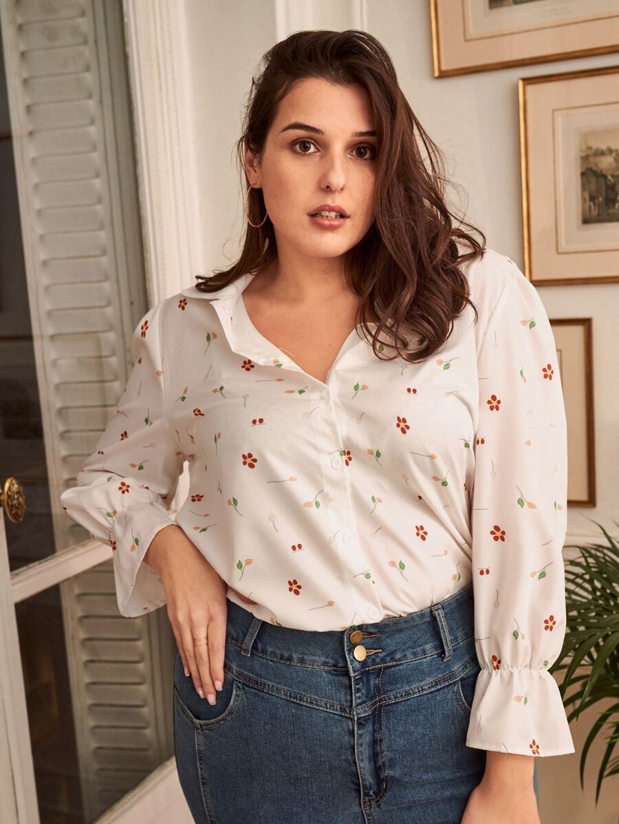 Chemisier à imprimé floral manches évasées