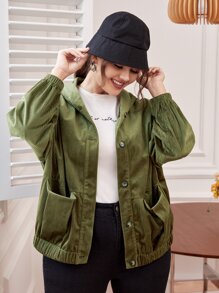Veste avec poche à capuche en velours côtelé