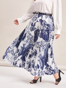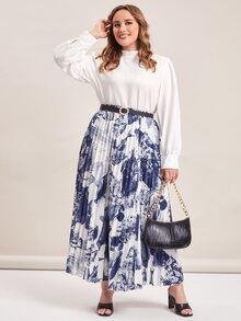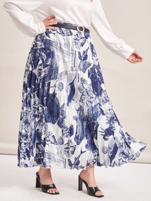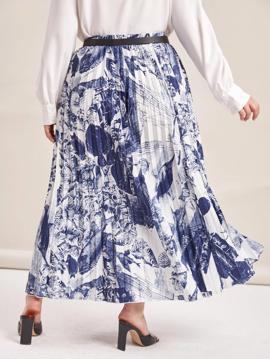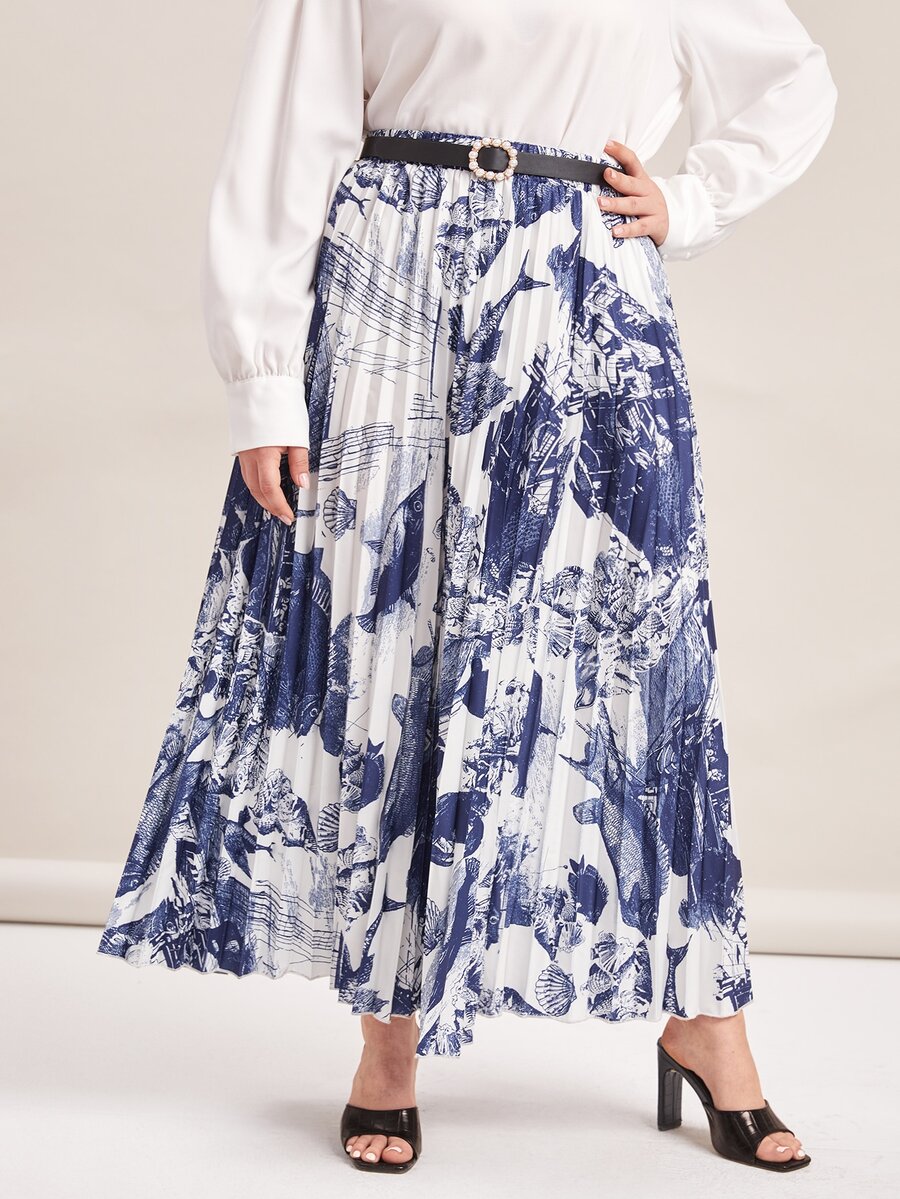 Jupe ceinturée plissée avec imprimé poisson