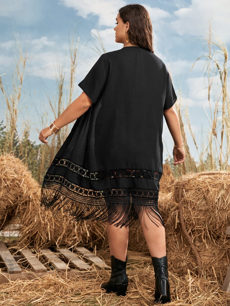 Kimono en dentelle à franges ouvert