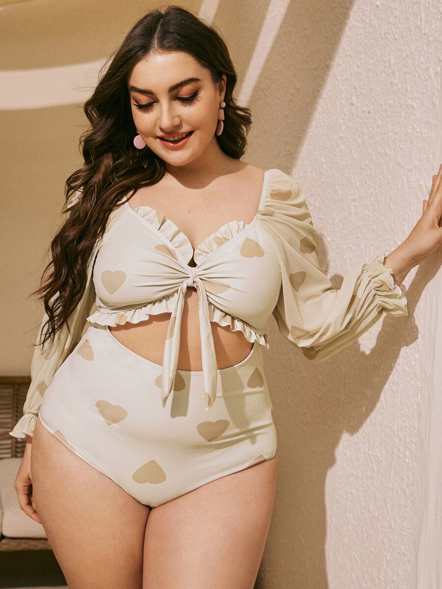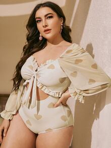 Maillot de bain une pièce avec imprimé cœur et nœud
