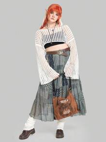 Fairycore Plus Pull Court Ajouré Épaule tombante