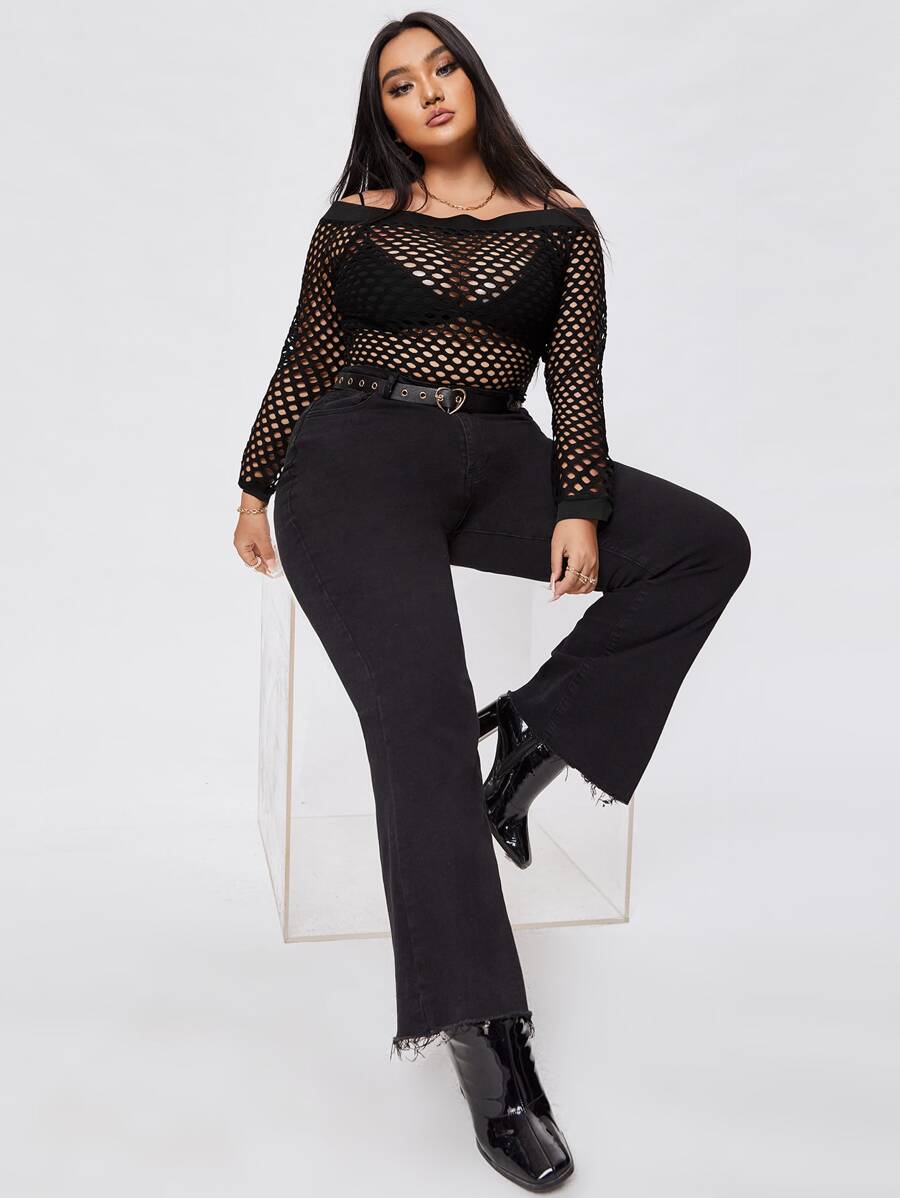 Top col bardot ajouré (sans soutien-gorge)