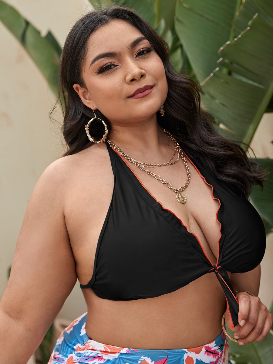 Haut de bikini ras-du-cou avec nœud