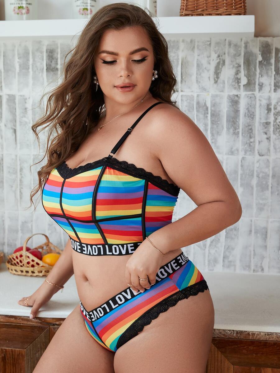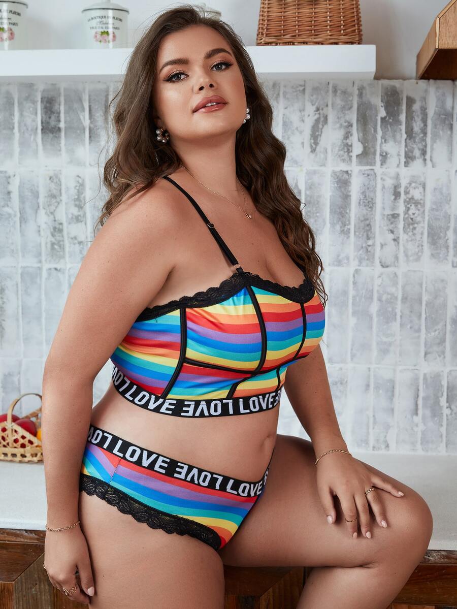 Ensemble de lingerie LGBT à rayures arc-en-ciel