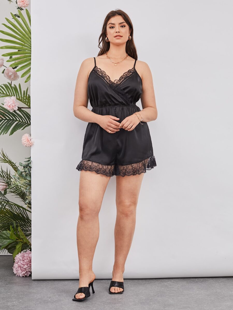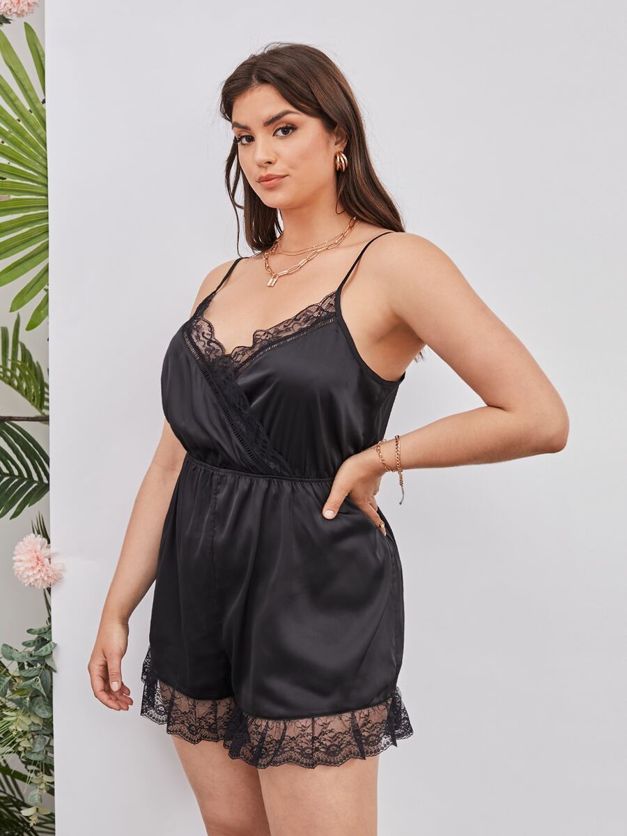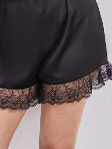 Combishort de nuit ourlet en dentelle en satin