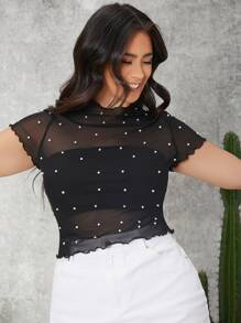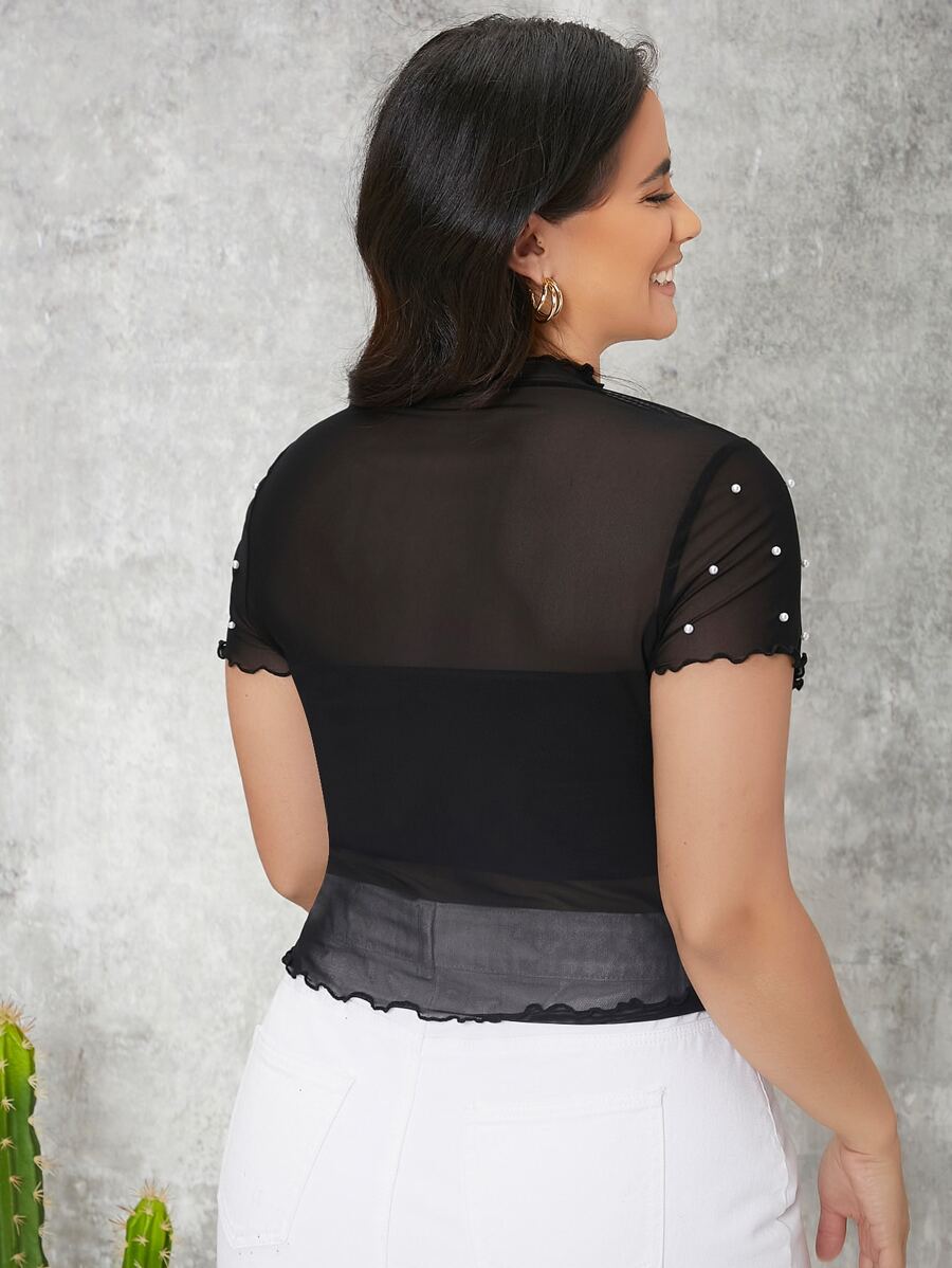 Top en tulle à ourlet ondulé à perles (sans bandeau)