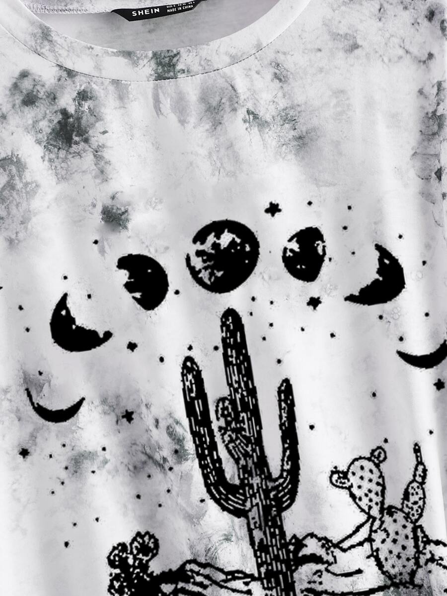 T-shirt lune et à imprimé cactus tie dye