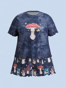 Cashmere Sun Fairycore Plus Ensemble De Pyjama Imprimé Champignon tie dye