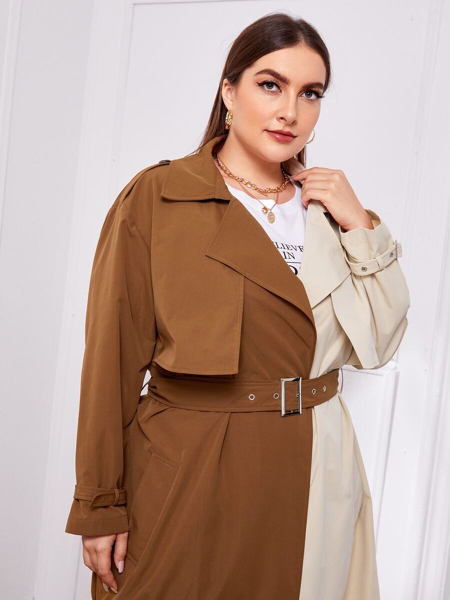 Trench bicolore avec ceinture